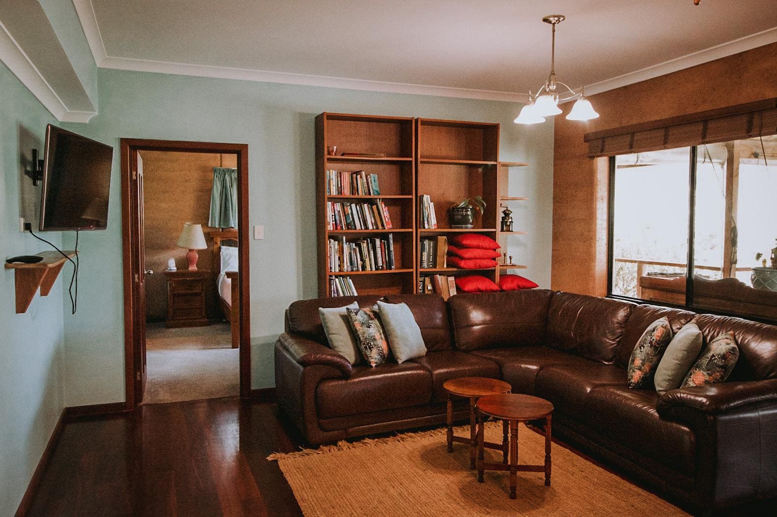 Fully self-contained three bedroom rammed earth cottage sleeping up to 8 guests.