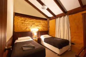 Sleep up to 4 people, with a queensize bed in the first bedroom and 2 single beds in the second.